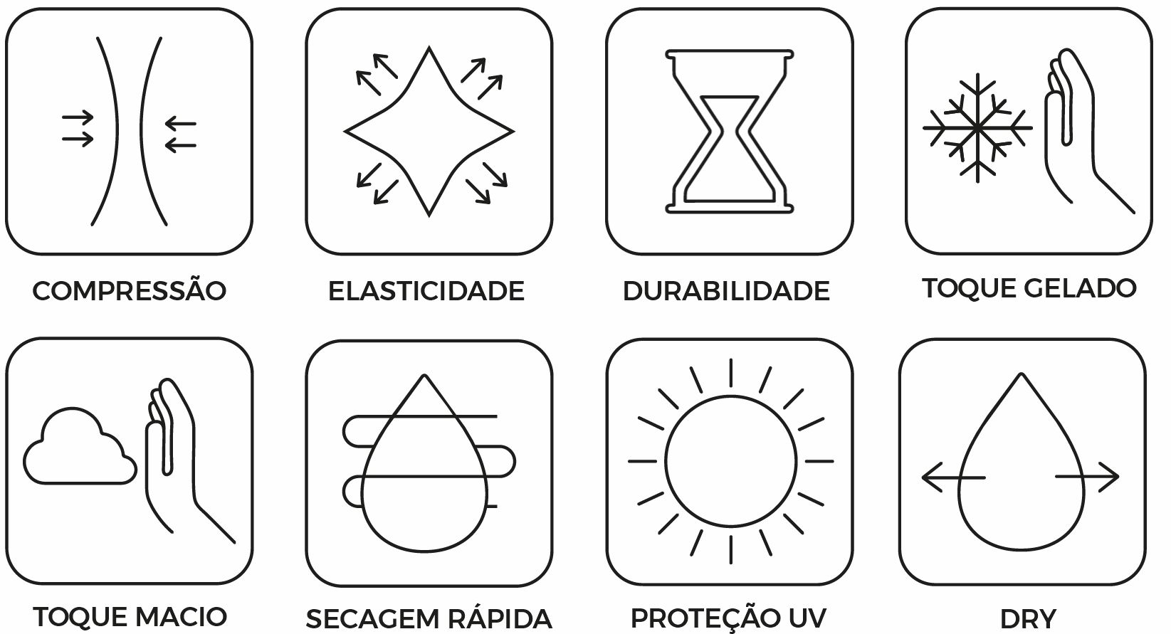 | Atributos do Material | Poliamida com Elastano |
