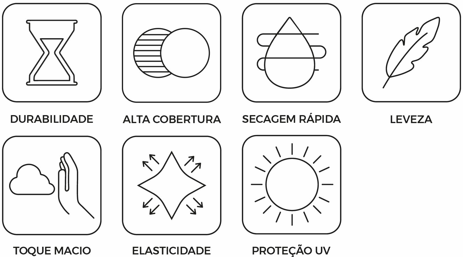 | Atributos do Material | Poliamida e Poliéster com Elastano |