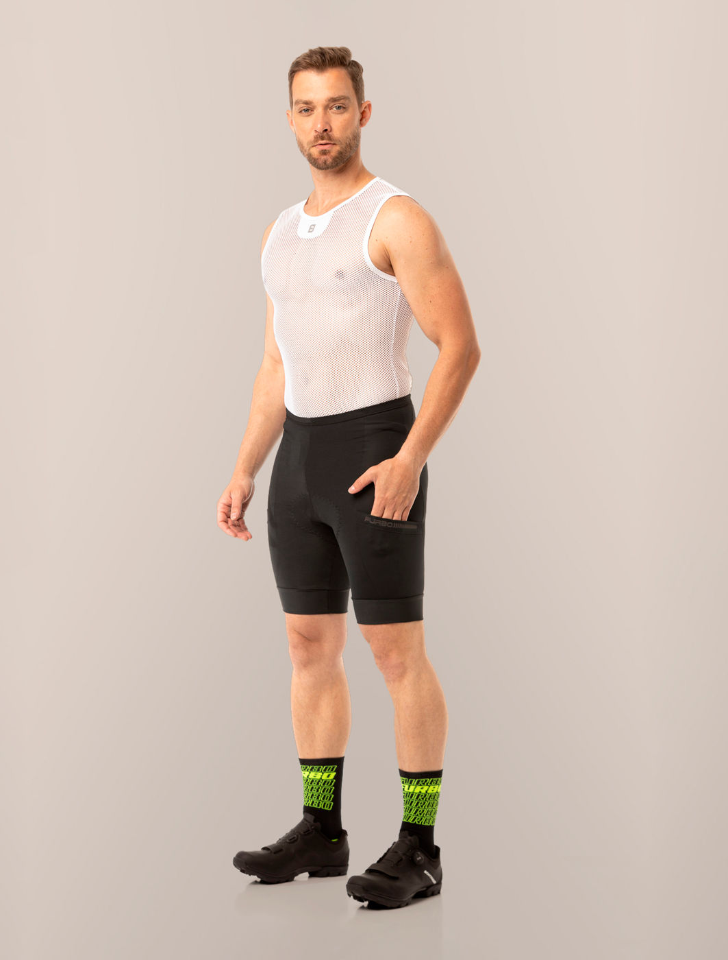 O baselayer ciclismo masculino da Furbo é confeccionado com tecido de poliamida e elastano, uma combinação que proporciona leveza, elasticidade e durabilidade. O tecido é respirável, tem secagem rápida e se molda ao corpo sem restringir os movimentos.
