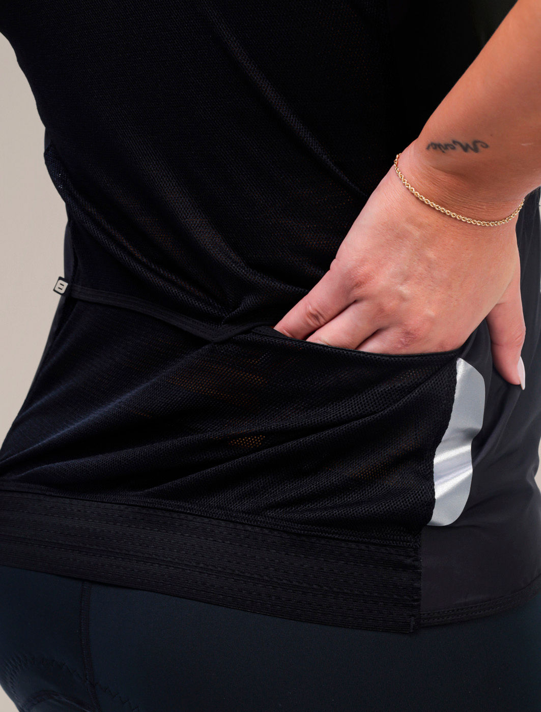 O colete feminino ciclismo preto básico Save é uma peça pensada para quem busca desempenho, conforto e estilo sobre duas rodas. Com um corte desenvolvido especialmente para o corpo feminino, ele garante liberdade de movimento e um ajuste perfeito durante o pedal. Sua modelagem aerodinâmica também contribui para melhorar a performance ao minimizar o arrasto causado pelo vento.