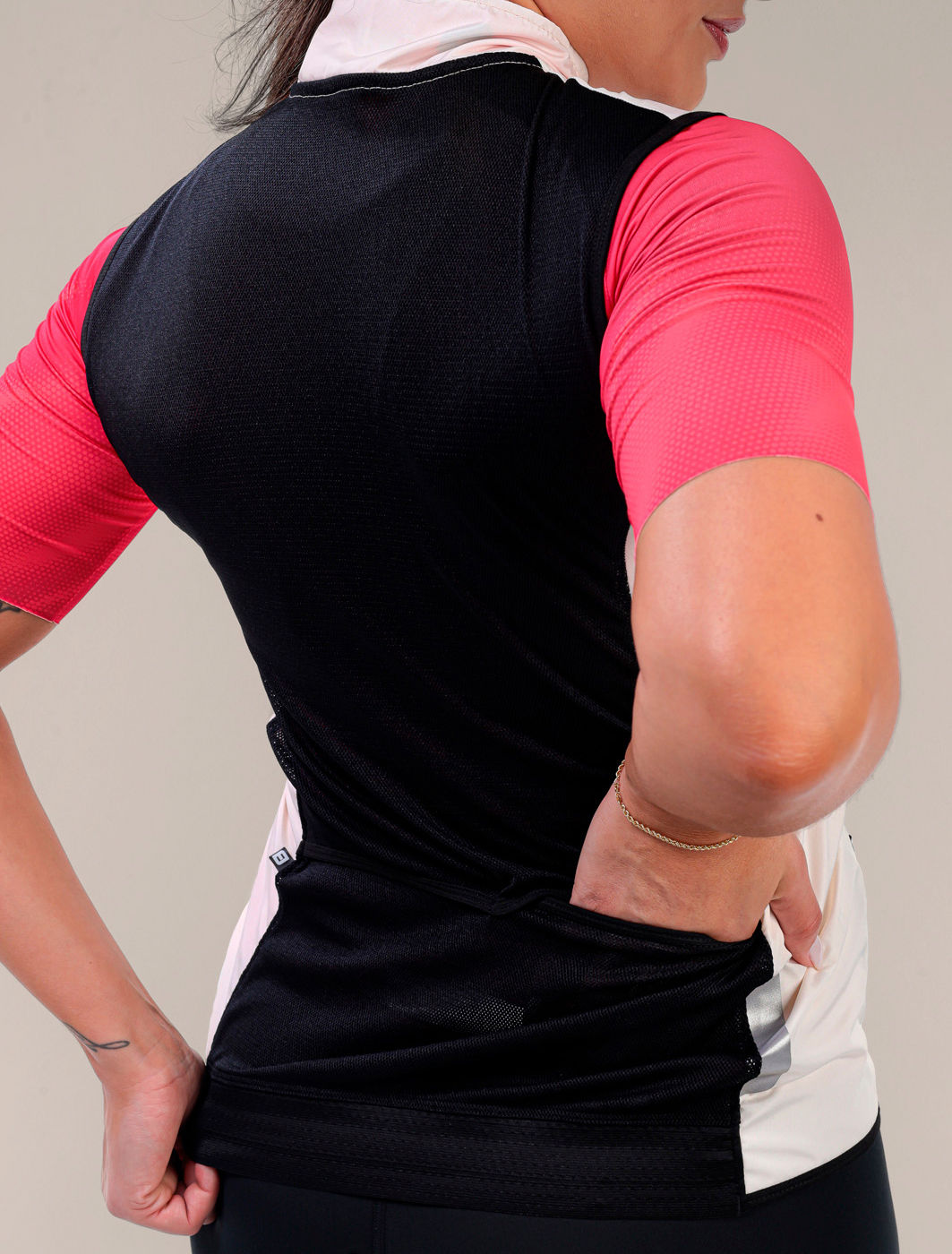 O colete corta vento ciclismo feminino foi pensado para facilitar a vida da ciclista em todos os detalhes. Na parte traseira, ele possui aberturas estratégicas que permitem o acesso rápido aos bolsos da camisa de ciclismo, sem precisar retirar o colete. Essa praticidade é essencial para manter a hidratação, alimentação e o acesso a itens pessoais de maneira fácil e rápida durante o percurso.