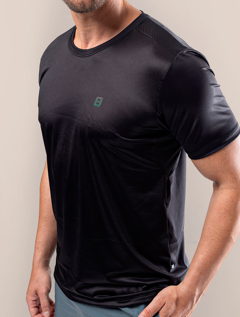 A tecnologia do dry fit funciona por meio de uma estrutura de fibras que cria microcanais responsáveis por puxar o suor da pele. Esse mecanismo é conhecido como “wicking”, ou absorção capilar, e permite que a umidade seja distribuída de forma uniforme na superfície externa da roupa.