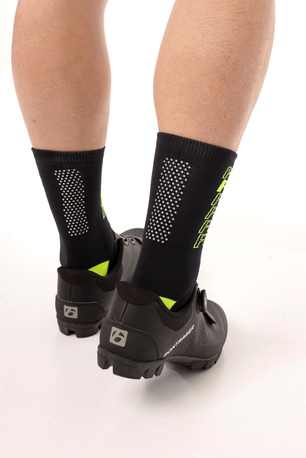 Detalhes Refletivos: Os detalhes refletivos estrategicamente posicionados são a principal característica das meias refletivas. Esses detalhes refletem a luz de faróis de carros e outras fontes de luz, tornando o ciclista visível a uma distância maior. Isso é extremamente importante para a segurança em estradas movimentadas ou trilhas escuras.