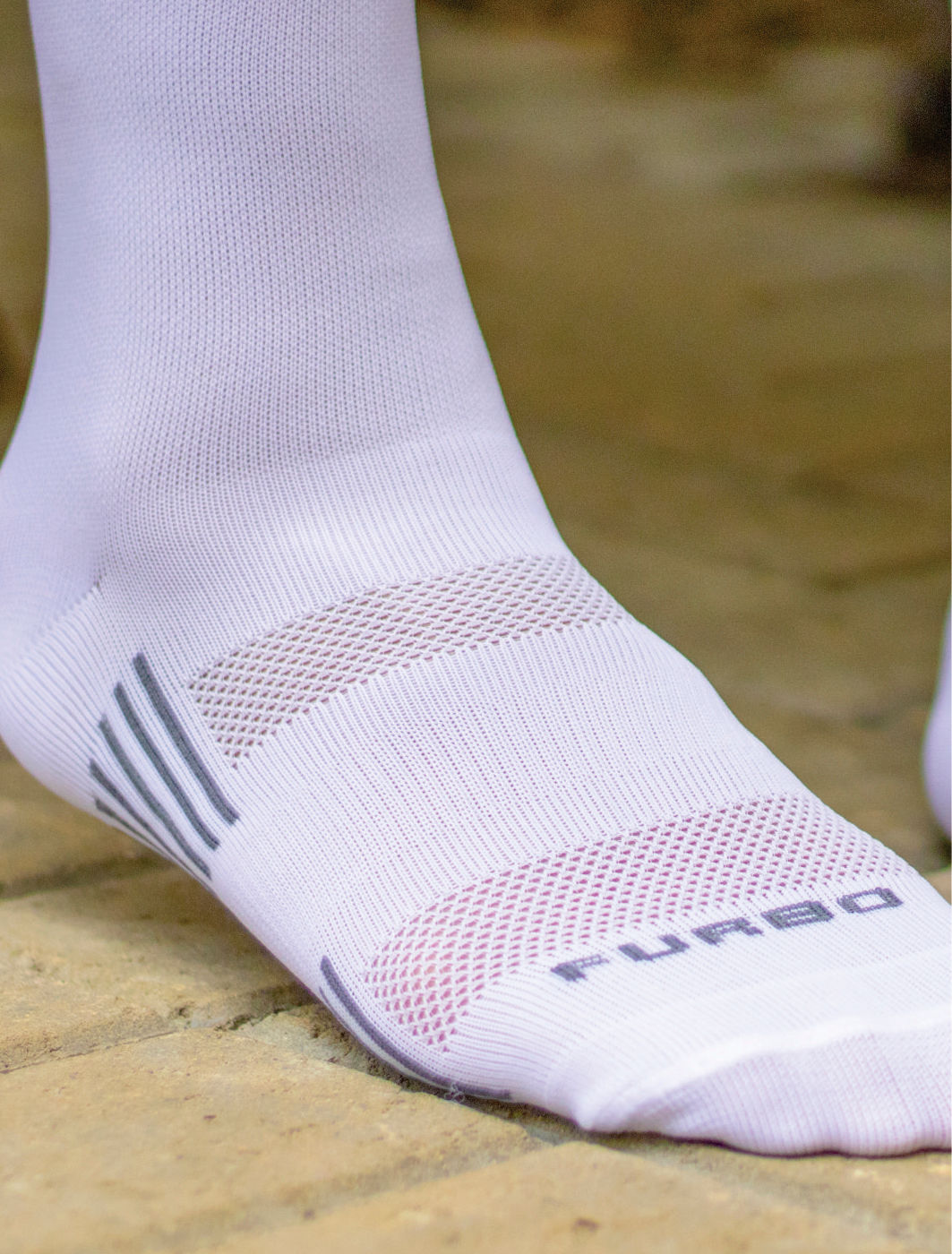 A modelagem da meia ciclismo masculina é pensada para se ajustar perfeitamente ao formato dos pés. Isso evita o excesso de tecido, o deslizamento dentro do calçado e o atrito com a pele. Com isso, o ciclista sente que está usando uma peça feita sob medida, o que aumenta a sensação de conforto mesmo após horas de uso.