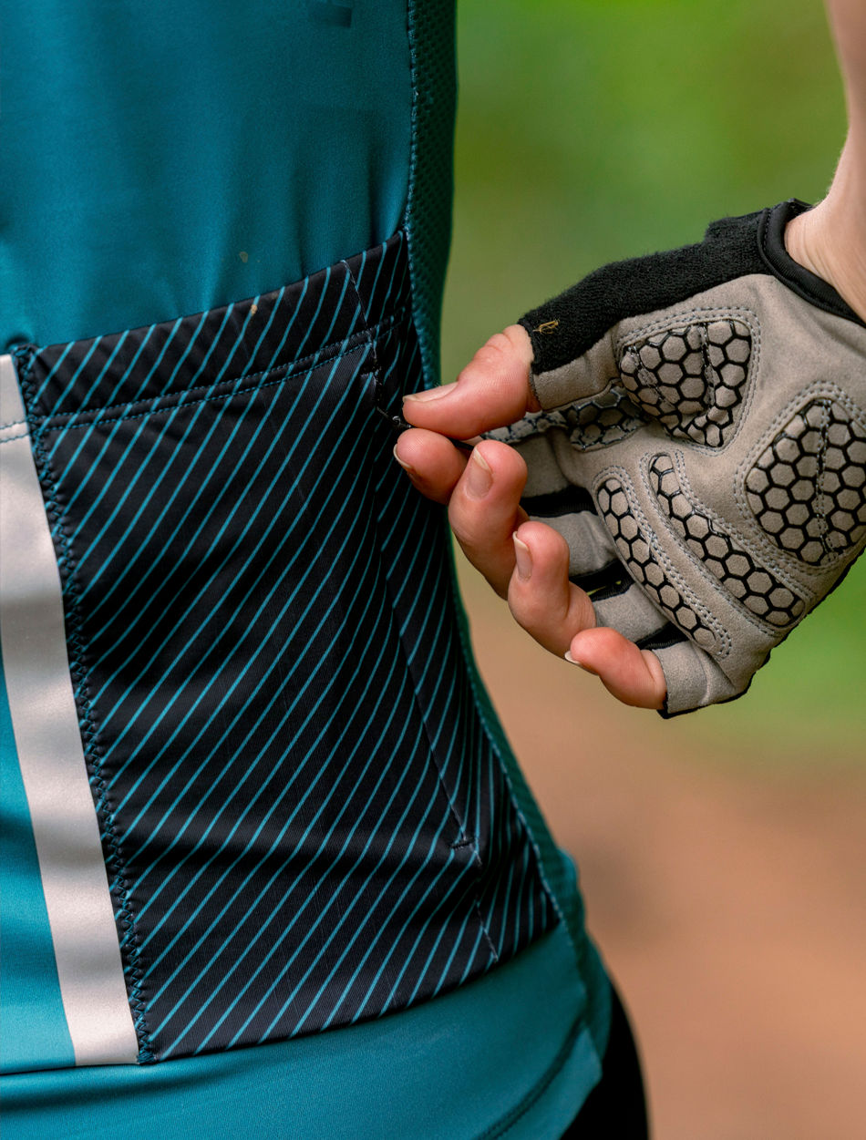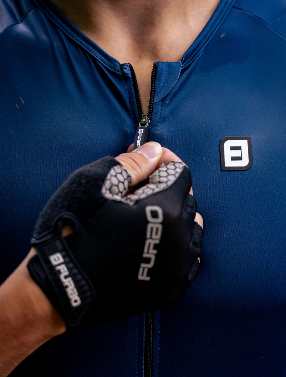 O zíper é um dos principais reguladores de ventilação na jersey. Em subidas intensas, abrir parcialmente o zíper aumenta o fluxo de ar, ajudando na regulação térmica. Em descidas rápidas, manter o zíper totalmente fechado melhora a aerodinâmica e reduz vibrações. Jerseys com zíper inteligente, como as da linha Furbo, permitem essa adaptação em segundos, aumentando a eficiência do ciclista no controle do próprio conforto.