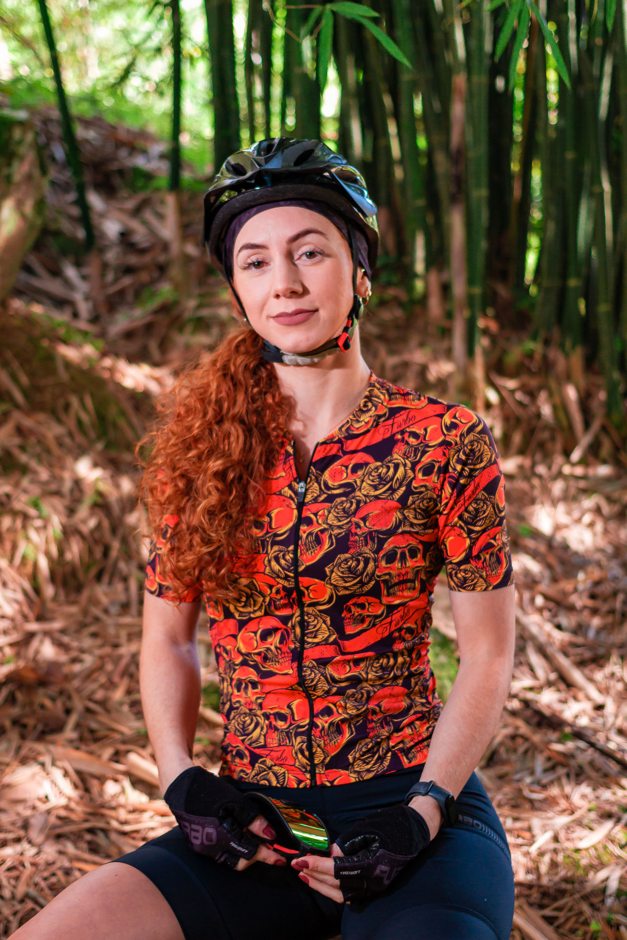 A primeira coisa que chama a atenção na Camisa Euro Skull é o seu design marcante. Com um fundo laranja e caveiras estampadas, a Camisa Euro Skull destaca-se entre as ciclistas com uma estética ousada e única. Longe de ser apenas mais uma peça de roupa funcional, a Camisa Euro Skull é uma declaração de estilo para aquelas que não têm medo de se destacar.