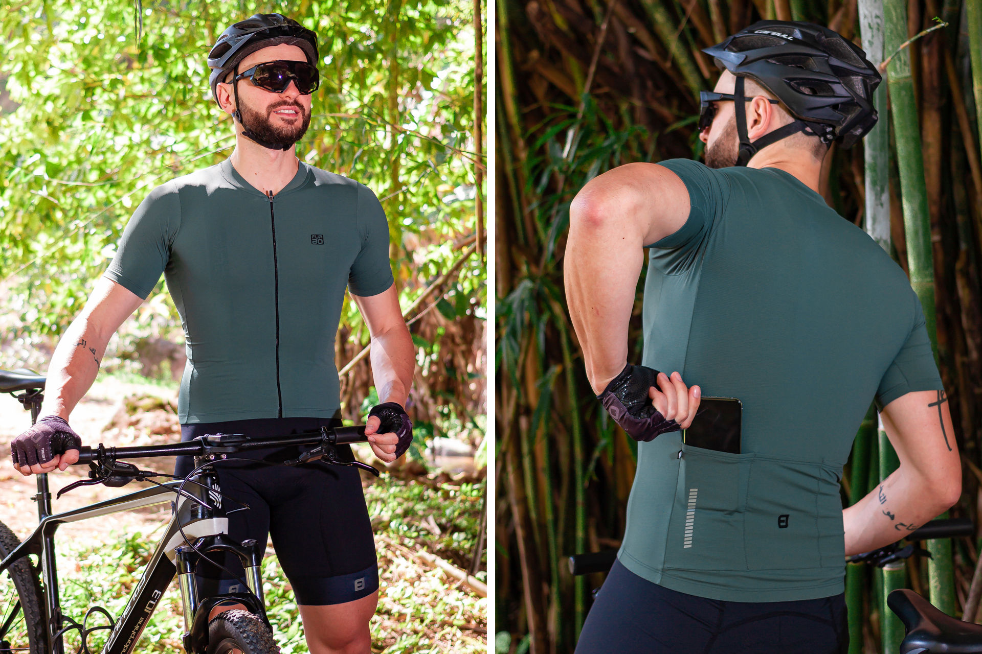 Praticidade e matérias-primas: dentre as suas principais características, ela possui 3 (três) bolsos traseiros, que são úteis para transportar pequenos objetos durante o seu treino ou prova. Suas mangas 3/4 possuem um acabamento exclusivo, o que garante que a manga não se mova de lugar ou enrole. O zíper frontal da Jersey Ciclismo Masculina é inteligente, facilitando na abertura ou fechamento durante o pedal. E nas barras, possui um elástico siliconado que proporciona uma maior aderência da peça ao corpo.