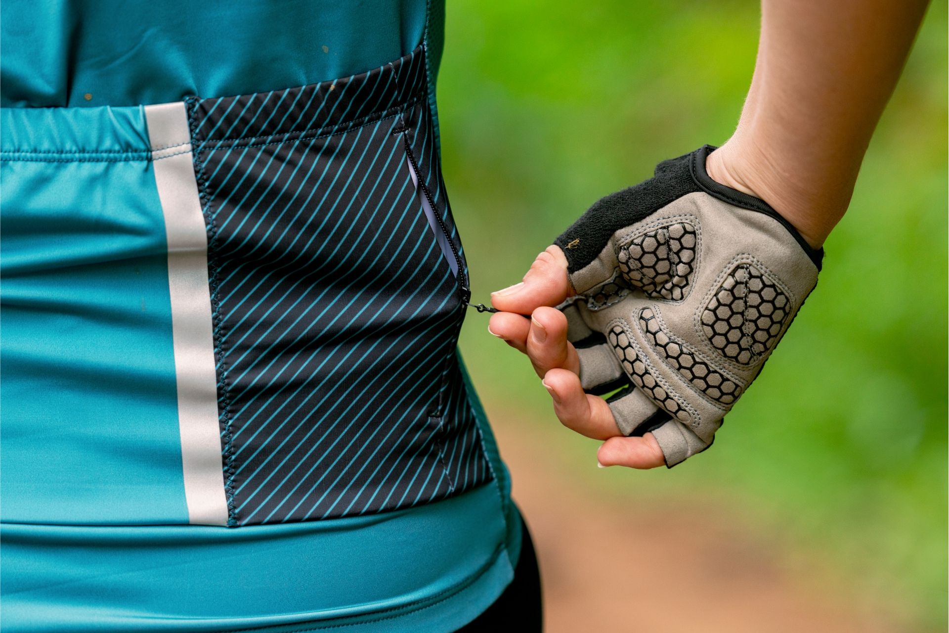 » A camisa ciclismo feminina possui três bolsos amplos nas costas e um quarto bolso com zíper;