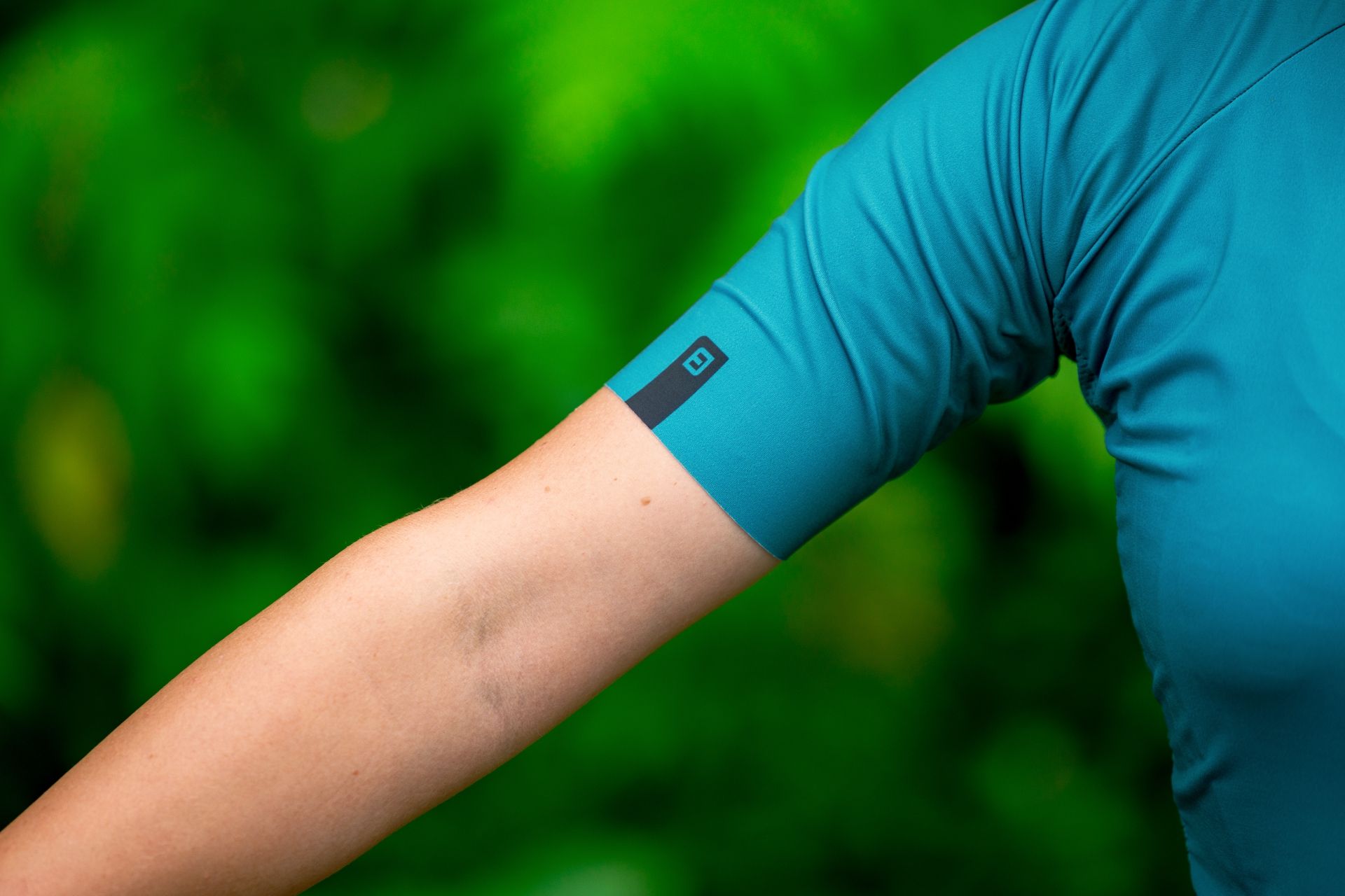» Elástico de silicone contínuo na barra, garantindo fixação extra da camisa de ciclismo mtb junto ao corpo;