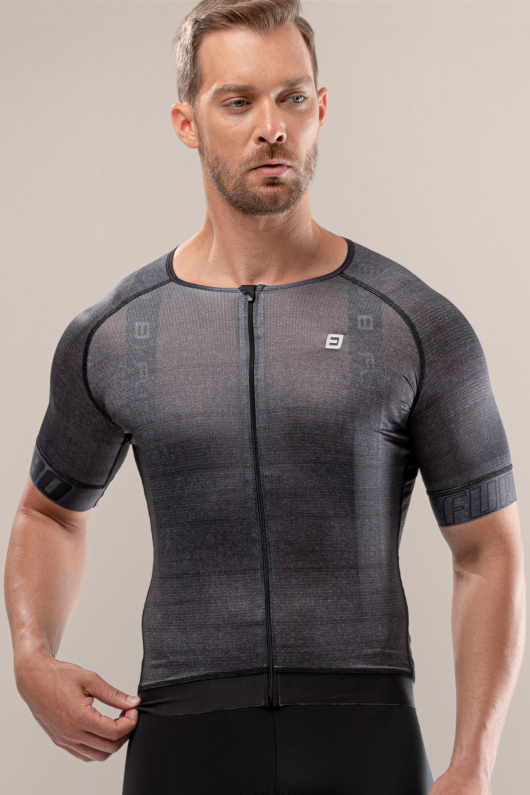 Sua construção é feita em uma combinação perfeita de 2 (dois) artigos de poliéster com elastano de alto apelo tecnológico, extremamente leves. Sua frente, costas e mangas são feitas em uma base de tecido de fibras filamentadas, gerando alta elasticidade, toque macio, secagem rápida e conforto. Já nas suas laterais, a camisa de ciclismo masculina possui uma base de tecido micro perfurada com alto poder de respirabilidade, garantindo uma extrema ventilação.
