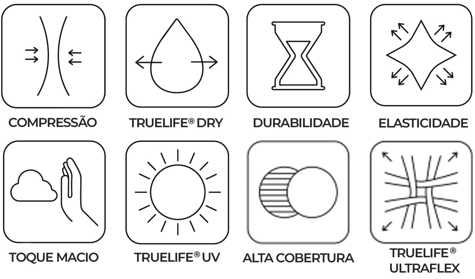 O tecido da legging passion ultraflex possui ainda a Tecnologia Truelife® DRY, que ajuda a absorver a umidade e o suor do corpo, permitindo uma rápida evaporação e mantendo a pele seca e fresca durante o exercício. E, possui também a Tecnologia Truelife® UV, com fator de proteção solar UPF50+ (mais alto nível de proteção), oferecendo uma camada adicional de defesa contra os raios UV prejudiciais. Desta forma, a Legging Passion é o produto ideal para as suas atividades em ambientes fechados e ao ar livre.