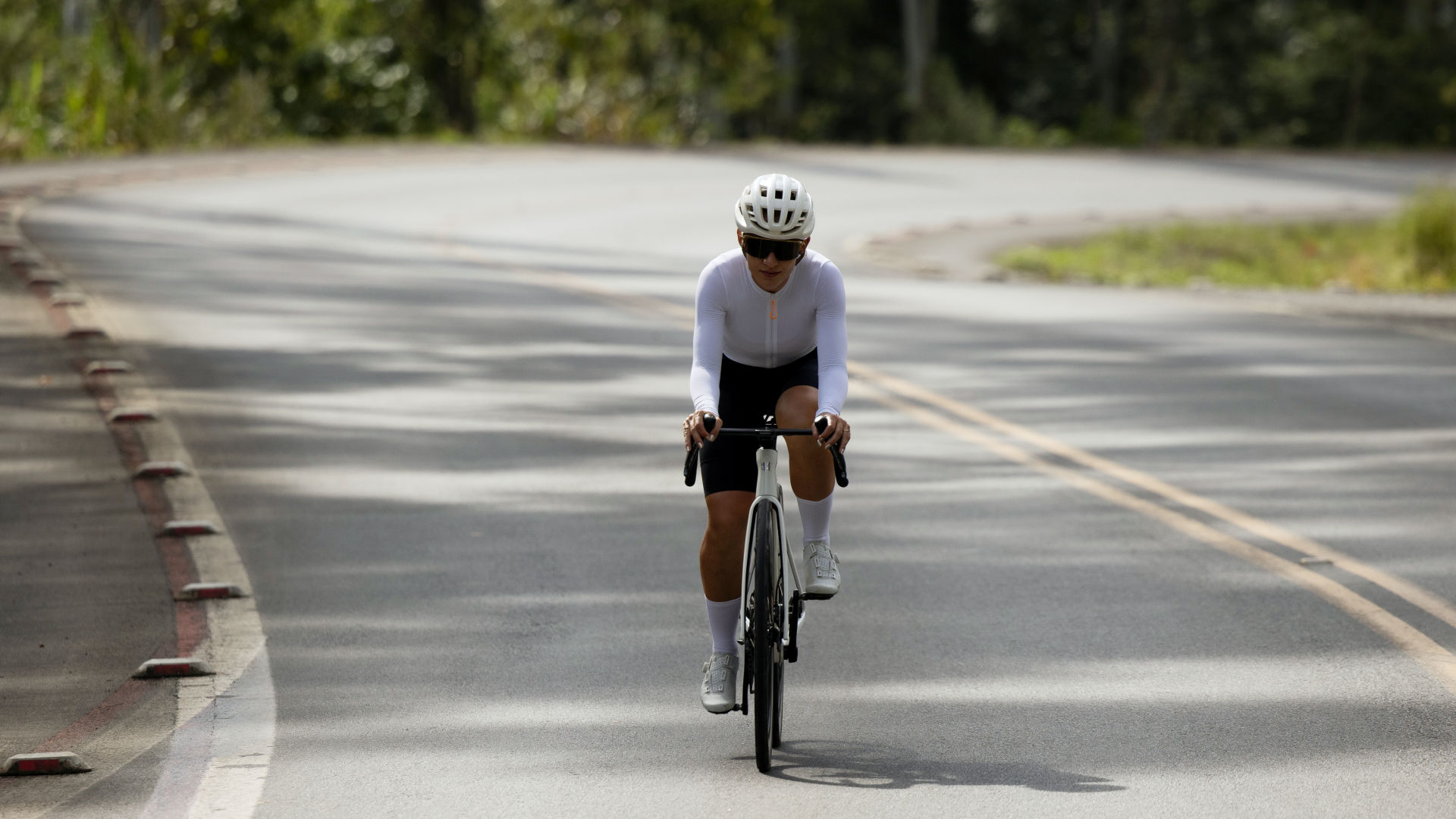 » Além disso, ele possui acabamentos relevantes: zíper na cor do tecido com puxador, tecido emborrachado na barra (para impedir que a peça se mova ou suba durante o pedal), bolsos traseiros com excelente suporte, mangas longas para proteção contra os raios UV prejudiciais, e detalhes refletivos para uma maior segurança durante os seus pedais noturnos ou de baixa visibilidade.