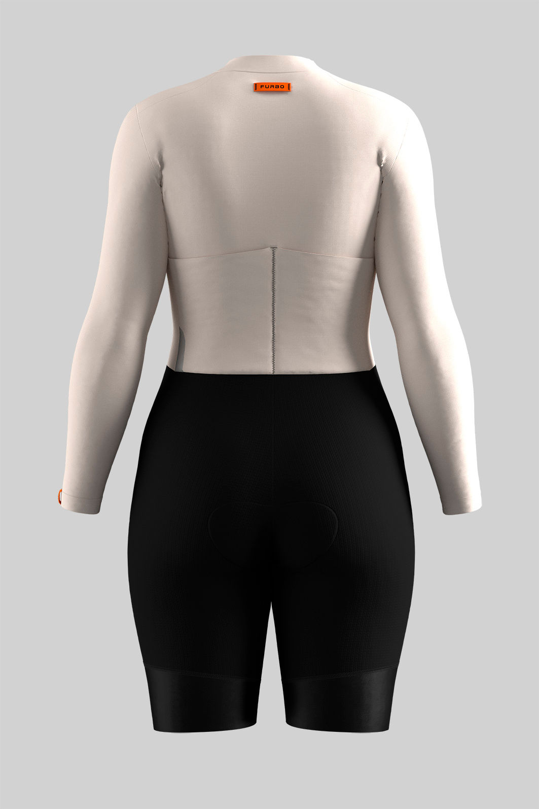 » Além disso, ele dispõe de acabamentos importantes: zíper na tonalidade do tecido com puxador, tecido siliconado na barra (para impedir que a peça se mova ou suba durante o pedal), bolsos traseiros com ótimo suporte, mangas longas para proteção contra os raios UV prejudiciais, e detalhes refletivos para uma maior proteção durante os seus pedais noturnos ou de baixa visibilidade.