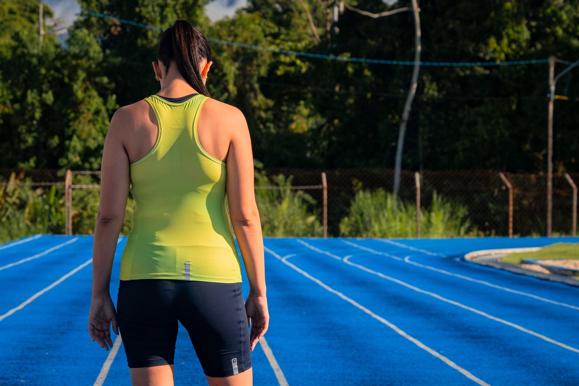 Por último, a Regata Feminina de Corrida apresenta detalhes refletivos aplicados por termocolagem nas costas, aumentando a visibilidade e segurança durante corridas noturnas ou em situações de baixa luminosidade.